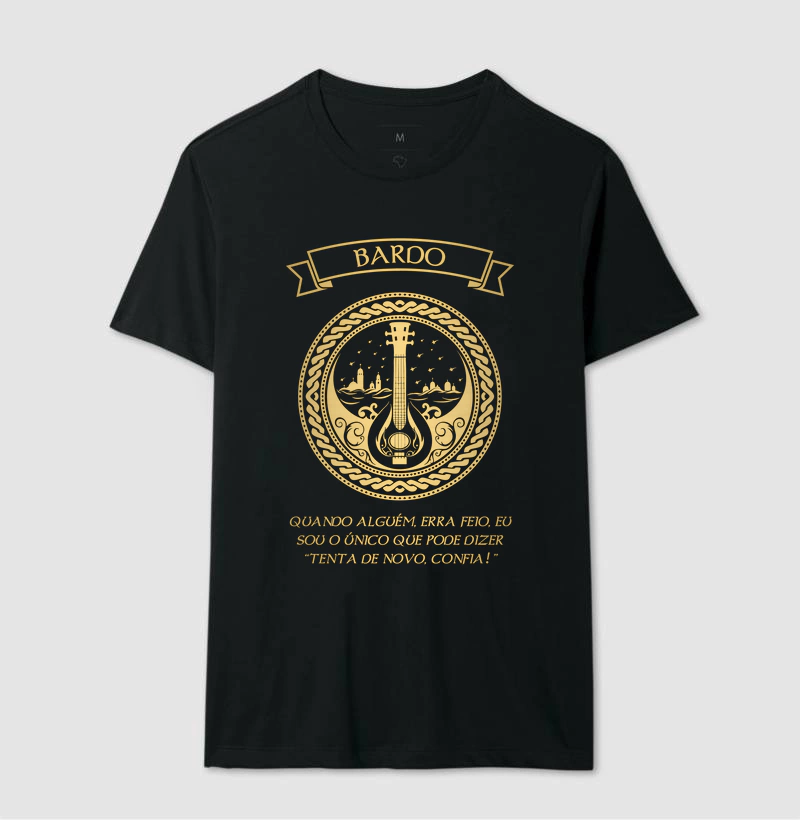 Encante, inspire e deixe sua marca em cada aventura com a estampa exclusiva da classe Bardo da Dragon Master! Perfeita para os mestres da palavra, da música e da magia, essa peça representa aqueles que transformam histórias em lendas e batalhas em espetáculos épicos.